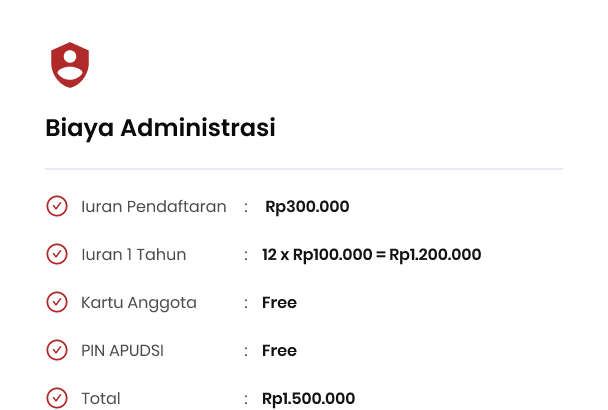 Biaya pendaftaran Anggota APUDSI